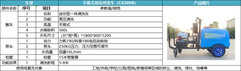 开州坦洁手推式高压冲洗车CX300B
