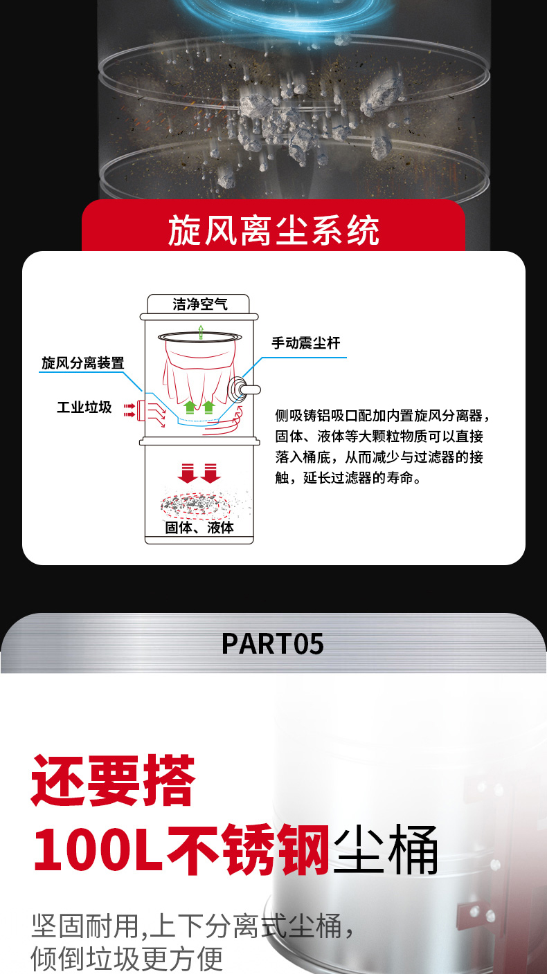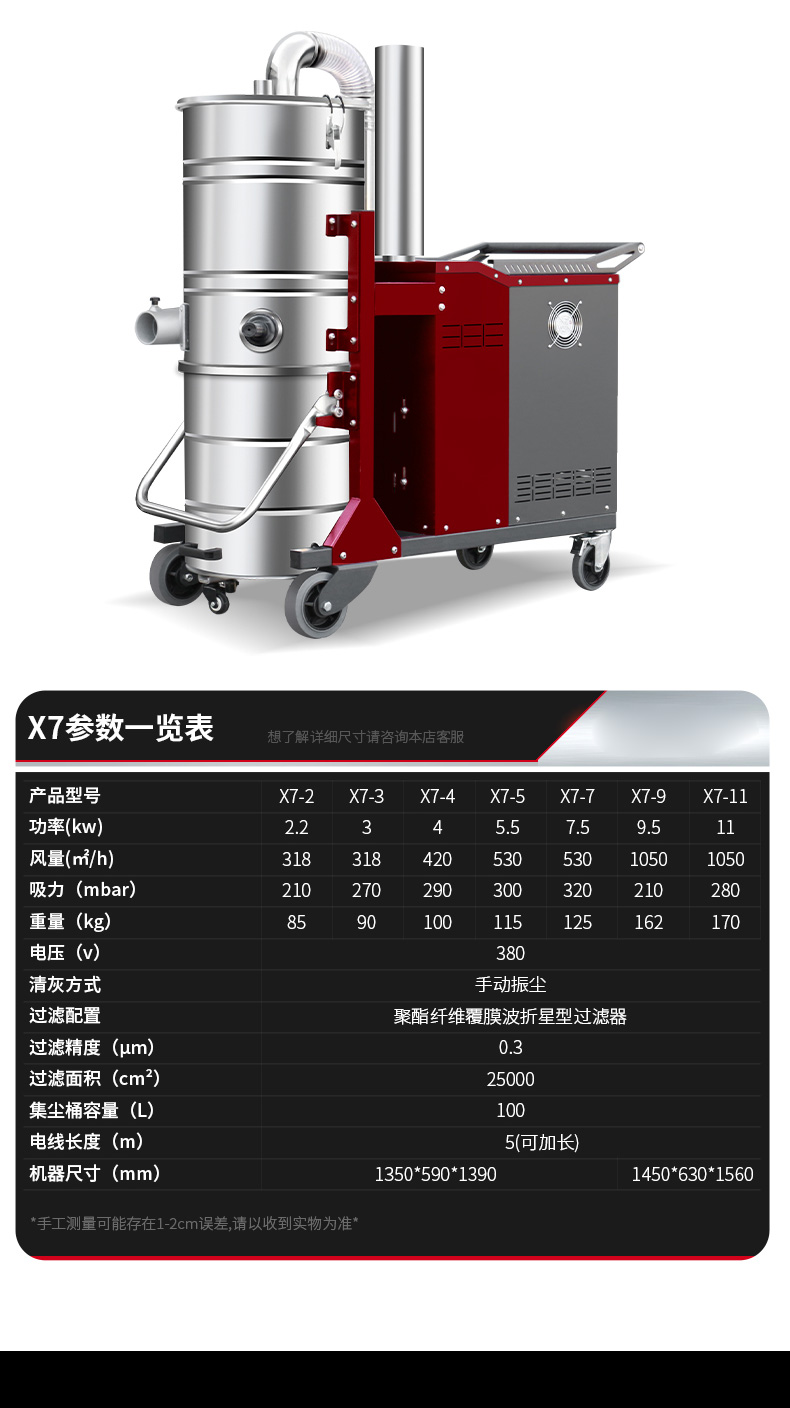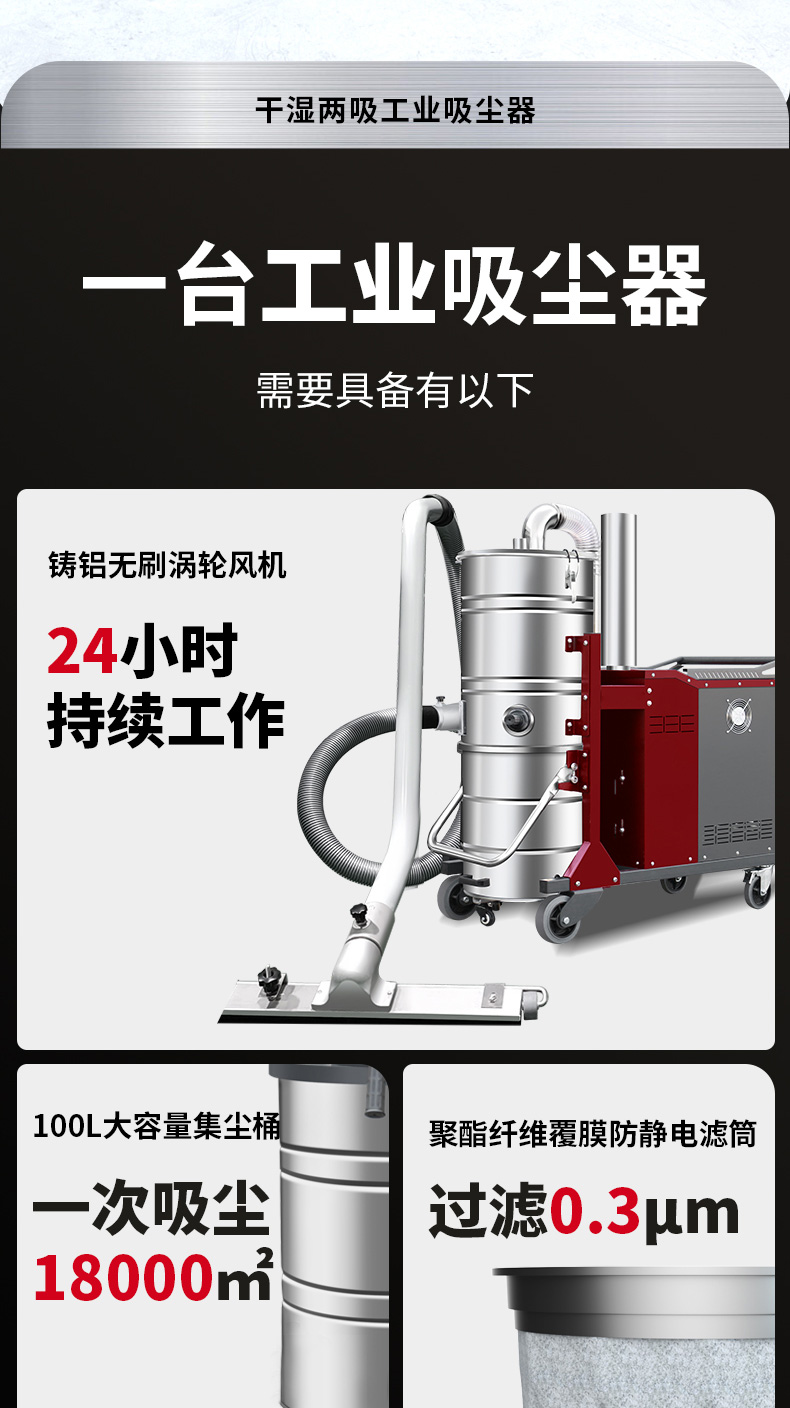 开州坦洁380V双桶不锈钢工业吸尘器X7系列