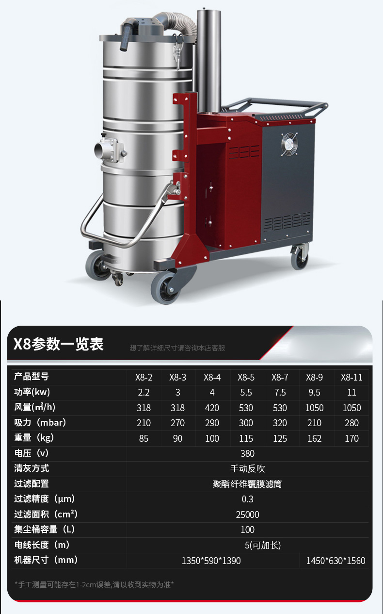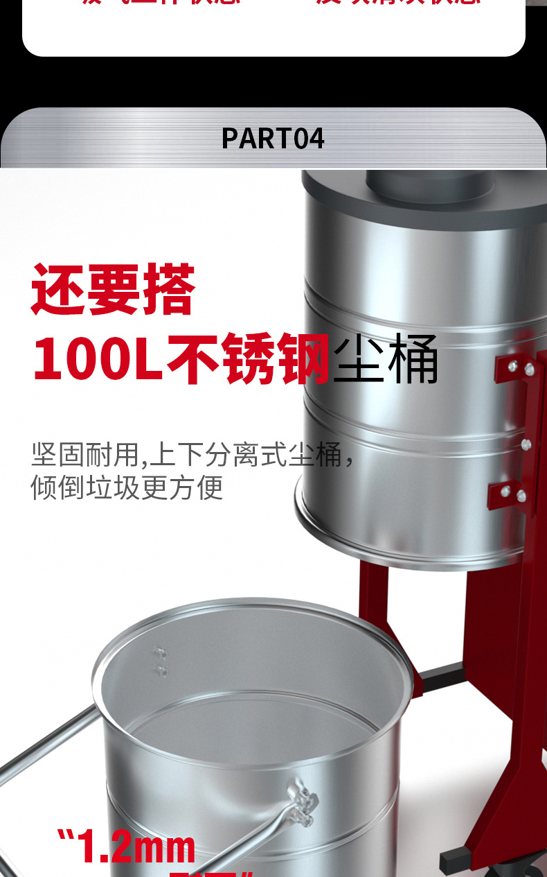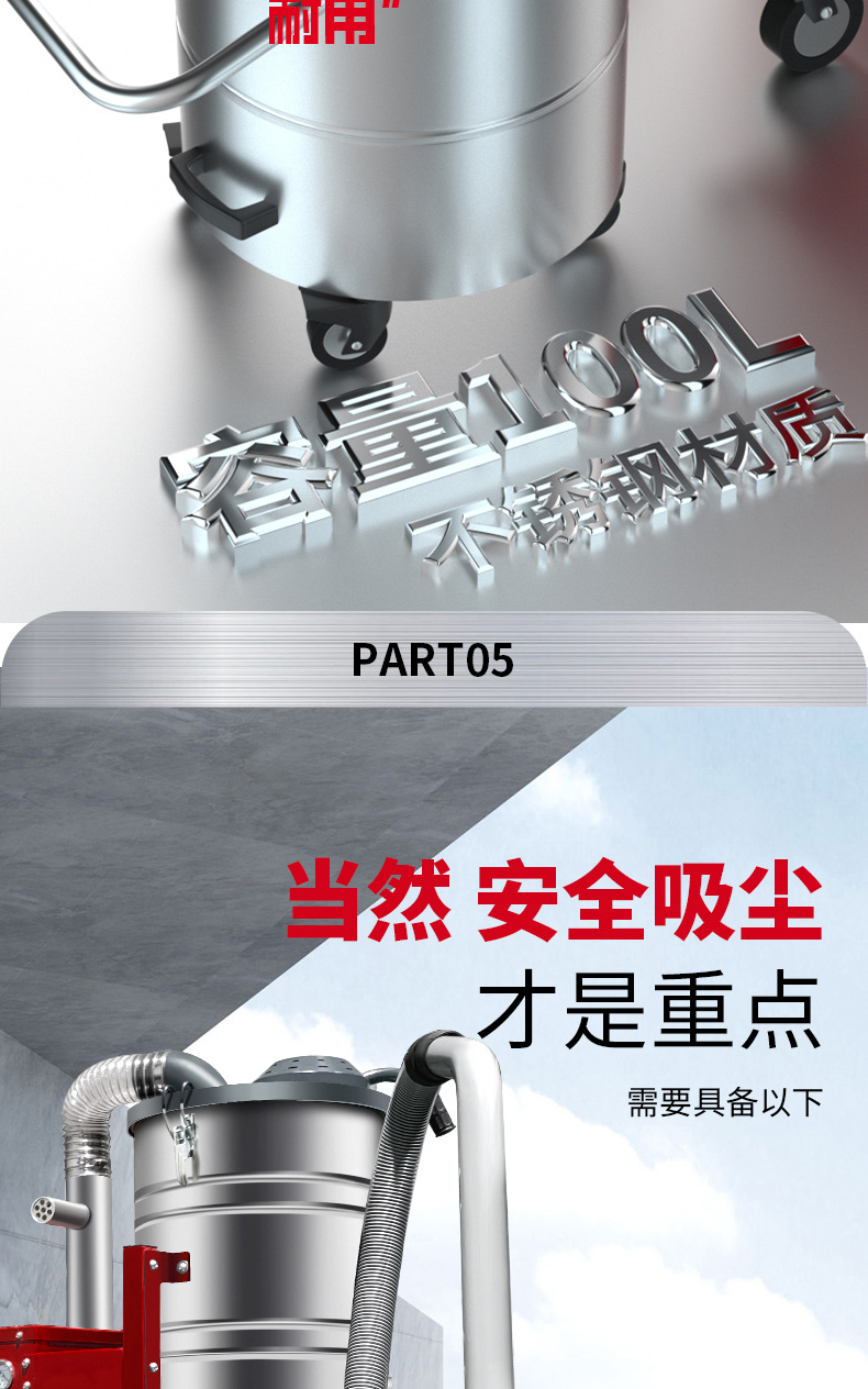 开州坦洁380V双桶不锈钢工业吸尘器X7系列